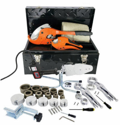 Welder for welding Socket Fusion style fittings in various materials including,
